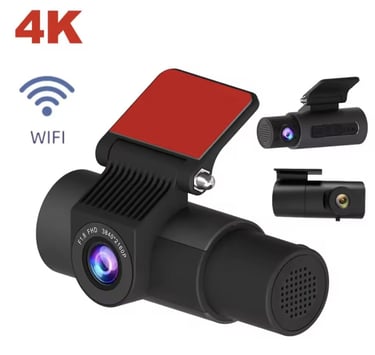 Prada Caméra de tableau de bord à 3 canaux pour voiture, caméra UHD 4K, objectif intérieur du véhicule, Wifi, enregistrement automatique, DVR, enregistreur vidéo 3CH.